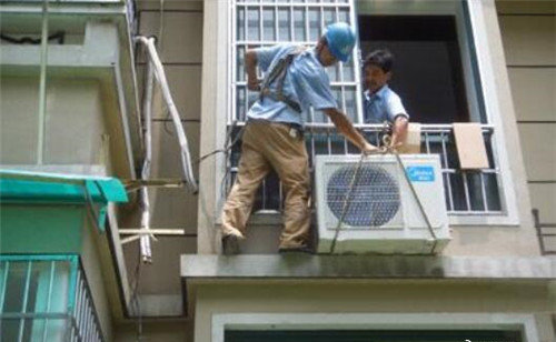 5.固定室外機(jī)支架,根據(jù)量出的距離和支架的相應(yīng)孔距選好距離,將膨脹螺栓緊固在墻上,不能有松動或滑扣現(xiàn)象;