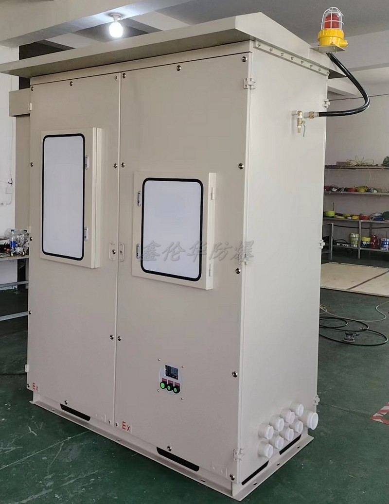 防爆正壓柜的正壓保護功能是防止外部有毒有害氣體進入柜內的關鍵。設計時,應選擇合適的正壓風機,確保柜內壓力始終高于外部環境壓力,防止氣體滲透。同時,還應考慮到風機的噪音、功耗等問題,選擇合適的風機類型和大小。